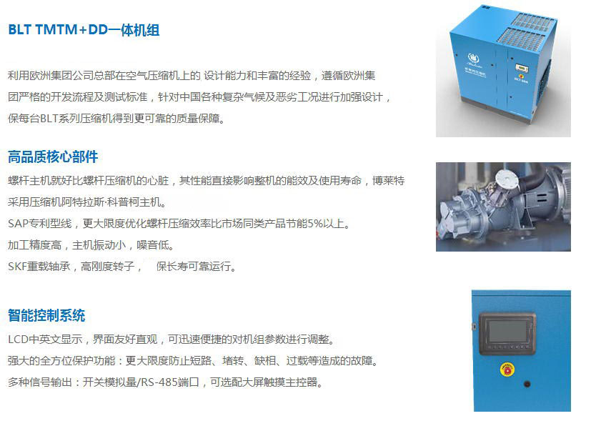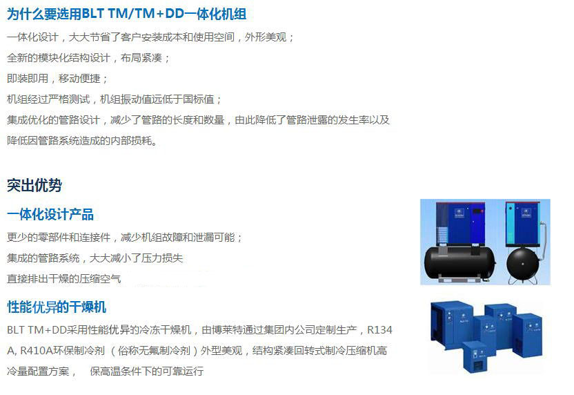 博萊特BLT TM/TM+ DD一體化機組是為了方便客戶使用并節(jié)省空間而設計。